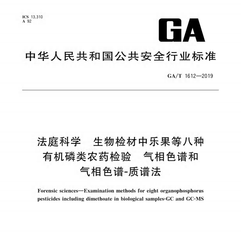 GAT16122019法庭科學(xué)生物檢材中樂果等八種有機(jī)磷類農(nóng)藥檢驗氣相色譜和氣相色譜質(zhì)譜法 更新日期:2022-12-30 下載包(1)