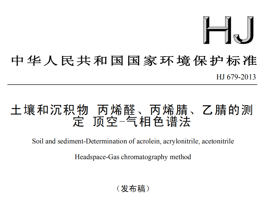 HJ 679-2013 土壤和沉積物 丙烯醛、丙烯腈、乙腈的測定 頂空-氣相色譜法 適用范圍本標準規定了測定土壤和沉積物中丙烯醛、丙烯腈、乙腈的頂空-氣相色譜法。本標準適用于土壤和沉積... 更新日期:2020-05-09 下載包(1)